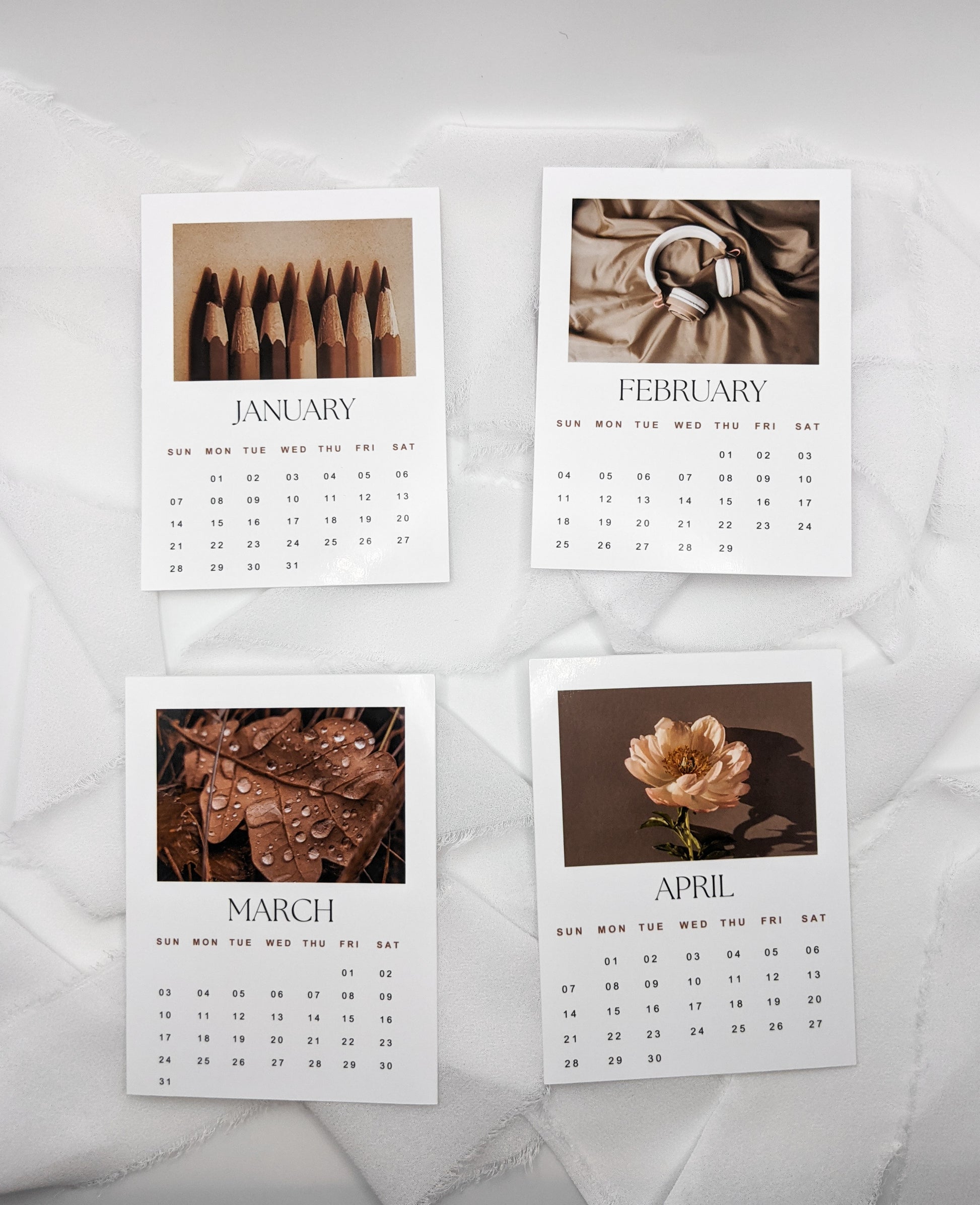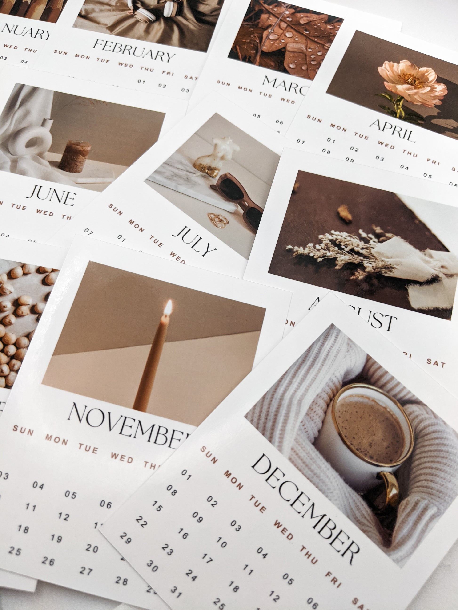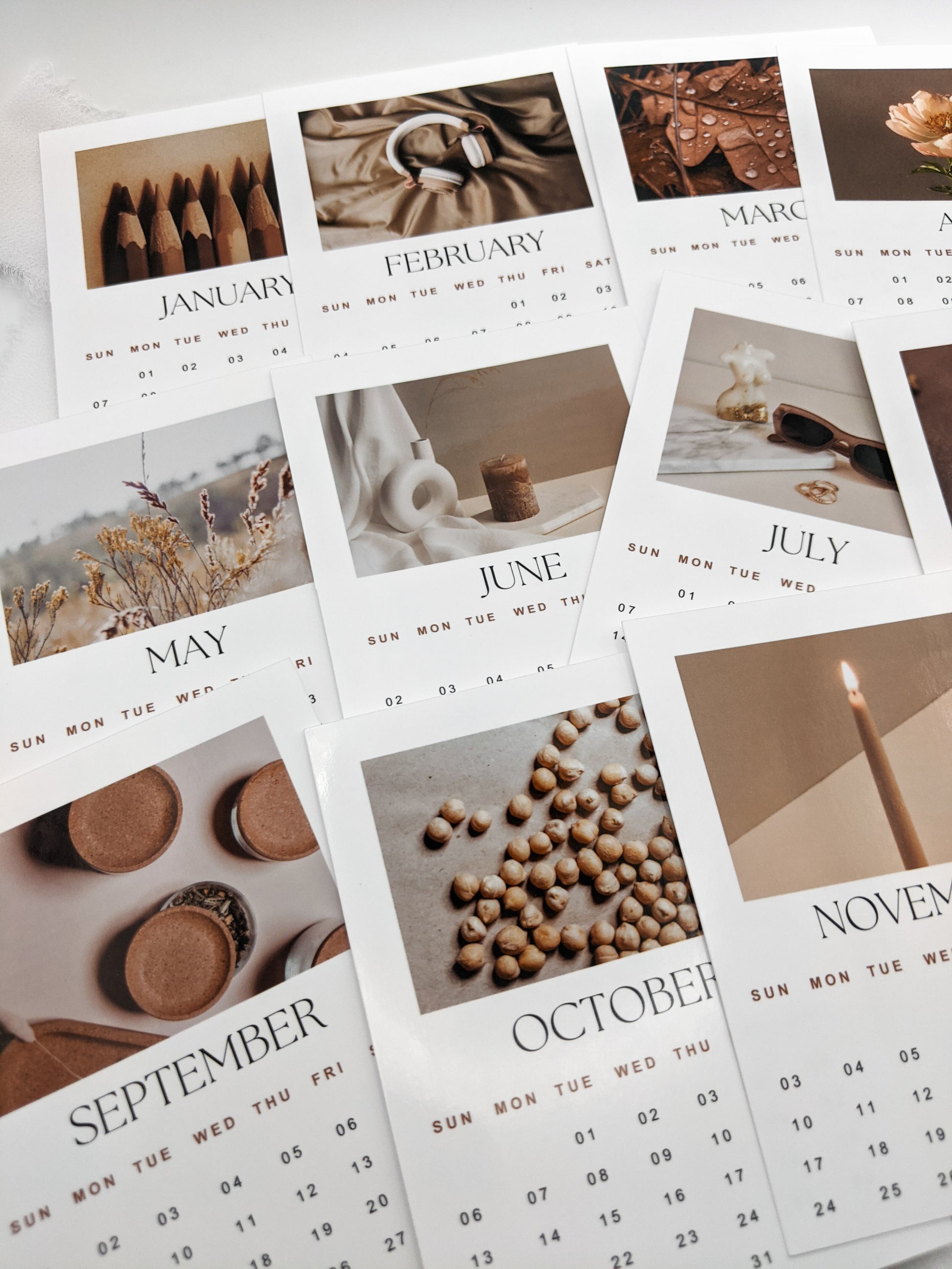This Polaroid Calendar pack features an array of aesthetic, minimal, brown-toned photos with a monthly calendar. Use these polaroids in your journal or planner, write on the back of them, or gift them to a special friend or family member.