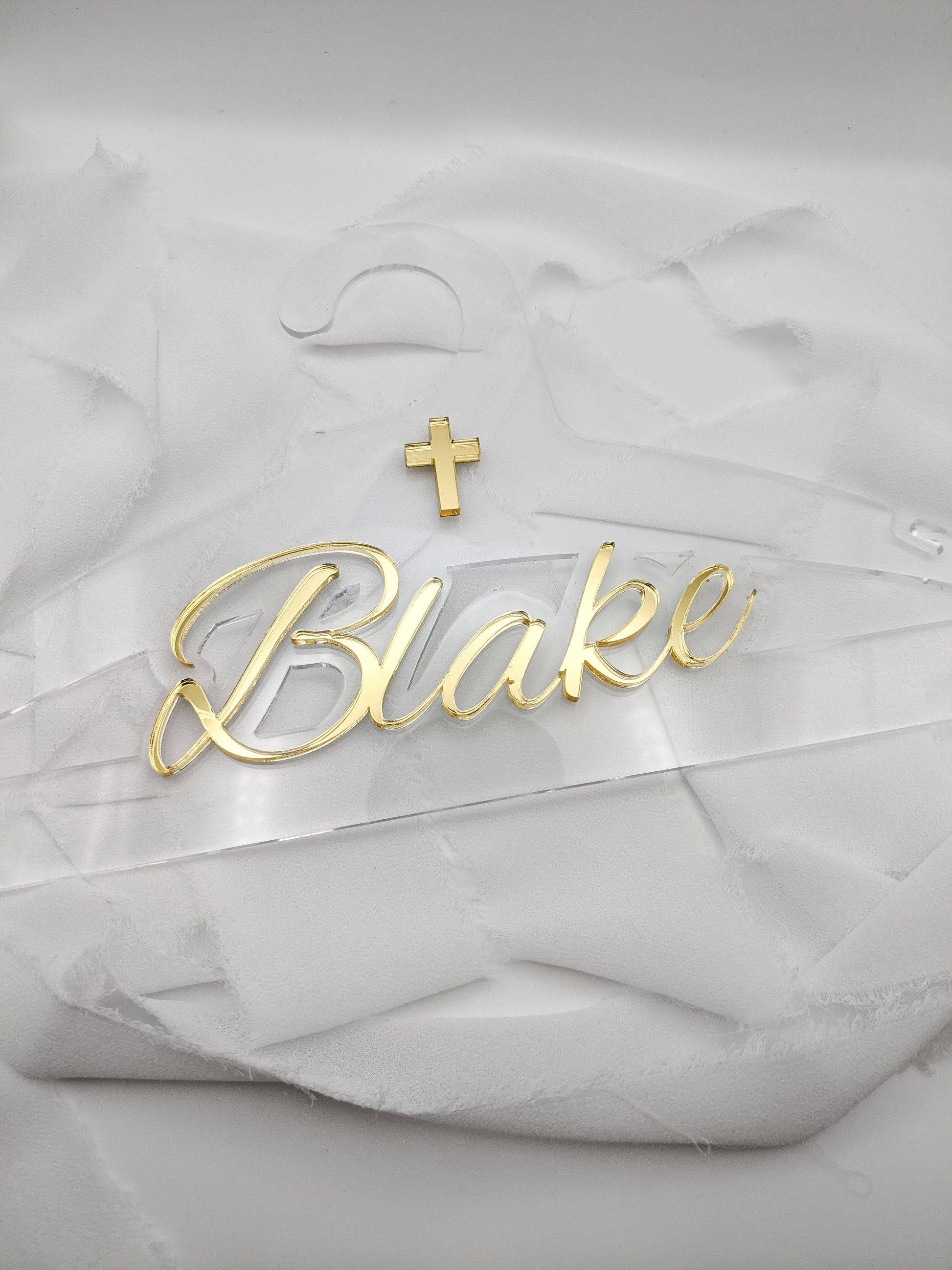 Make your child’s special day even more memorable with our Custom Baptism Acrylic Hanger, beautifully designed with a delicate cross detail and personalized just for your little one. This elegant hanger is perfect for displaying baptism gowns, christening outfits, or special occasion attire. Crafted from premium cast acrylic, it offers a modern, timeless look that adds a meaningful touch to photos and keepsake collections. The size measures “11” wide by 6.2” long.