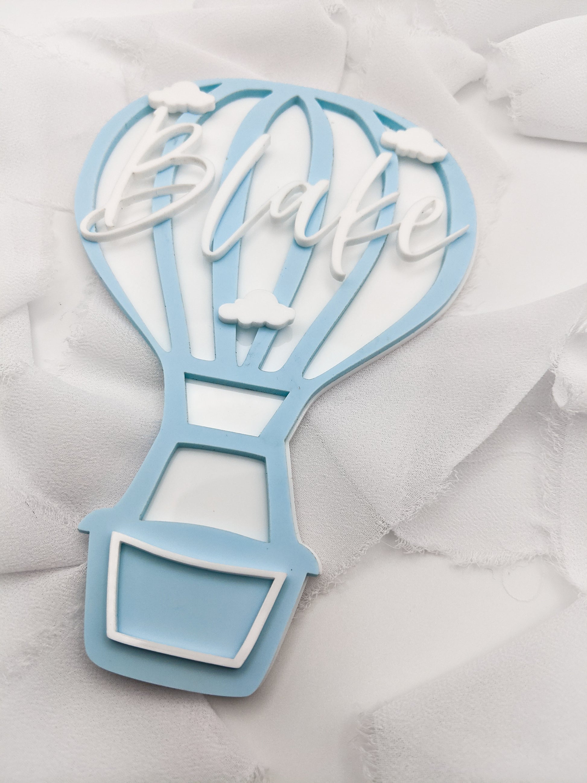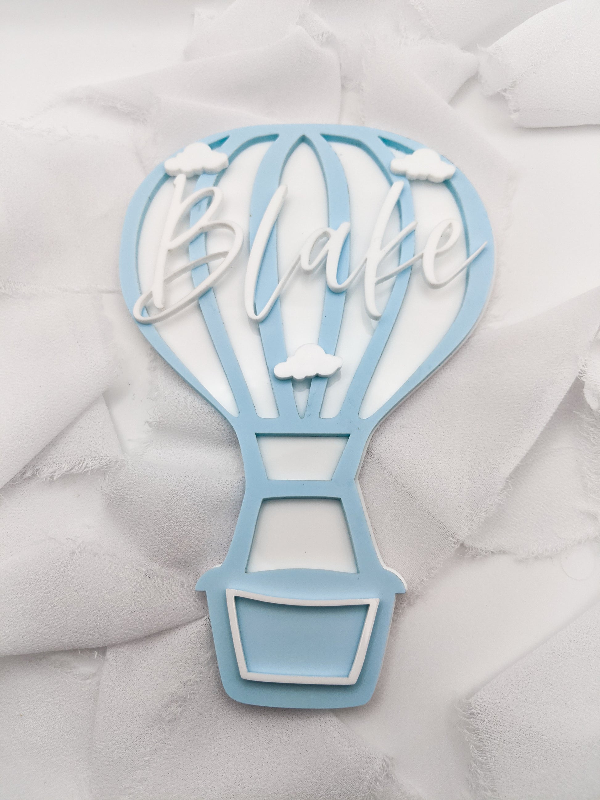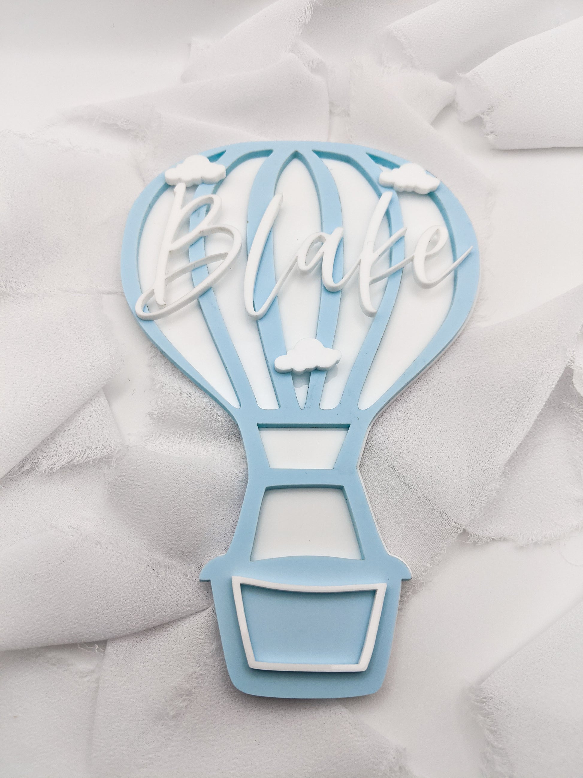 Custom Name Blue Hot Air Balloon Name Sign, Personalized Acrylic Cloud Kids Room Decor