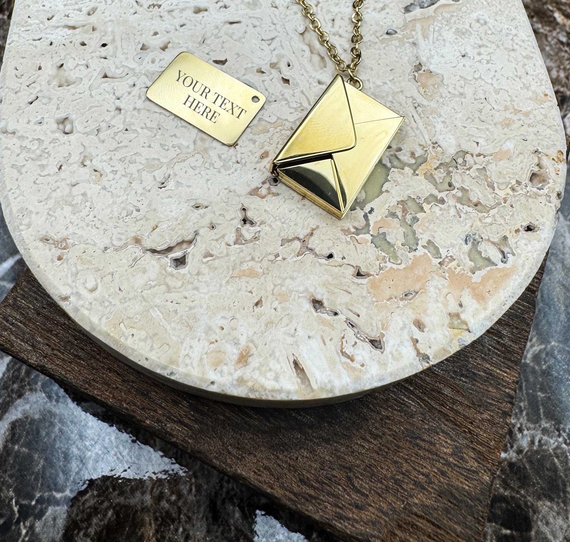 Add a timeless, personal touch to your everyday essentials with our The Golden Message Custom Keychain. Crafted from durable stainless steel, this elegant envelope keychain is designed to shine while holding special meaning. A letter-shaped insert slides out from the envelope, revealing your custom engraved message.