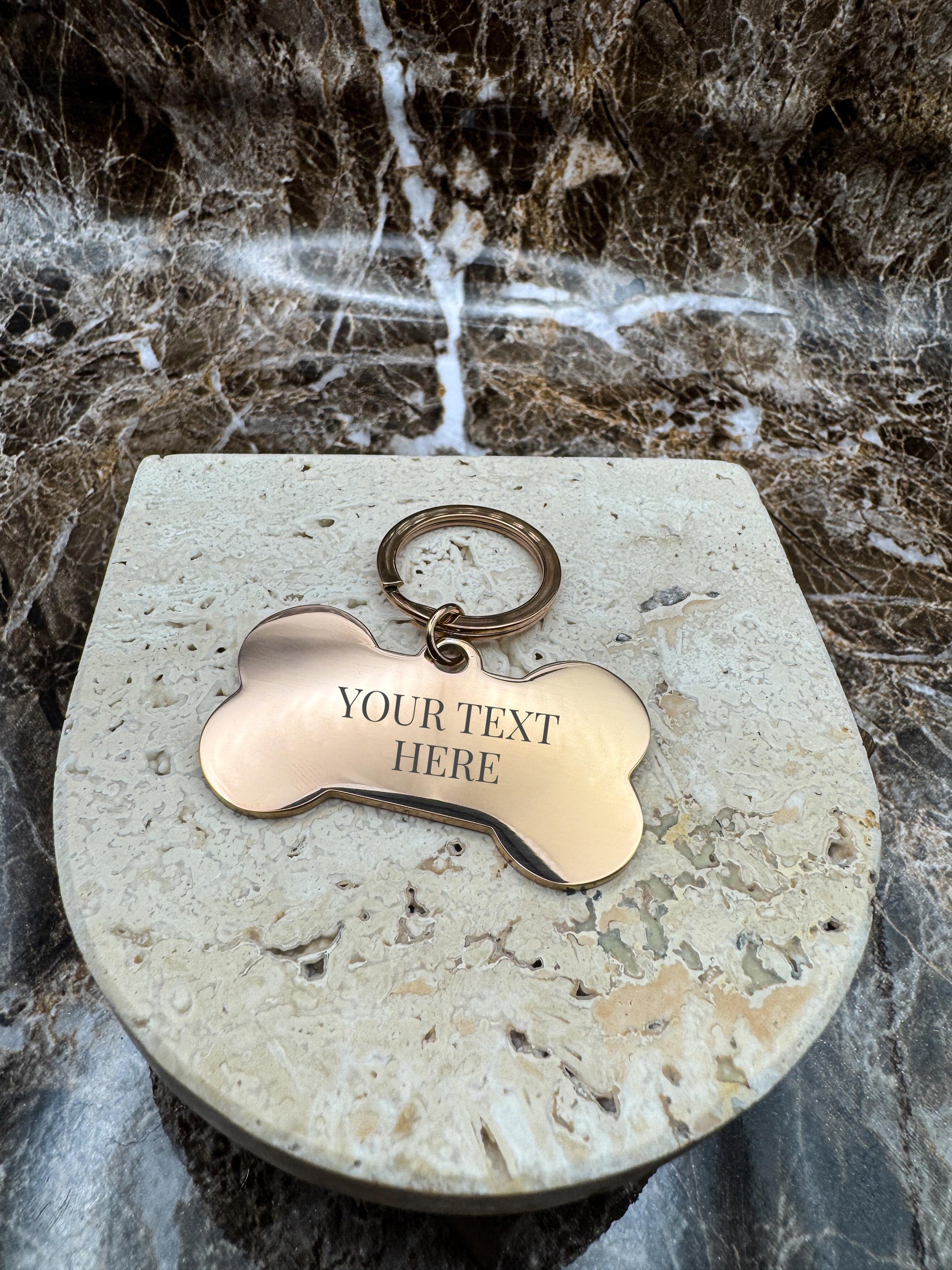 The Rose Gold Bone Custom Keychain, Personalized Rose Gold Engraved Keychain (1.95” x 1.1”)