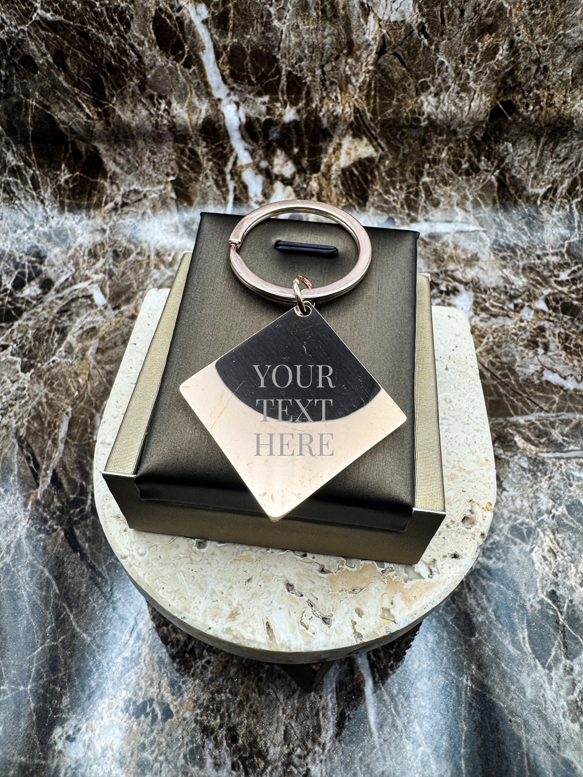 The Rose Gold Diamond Custom Keychain, Personalized Rose Gold Engraved Keychain (1.1”)