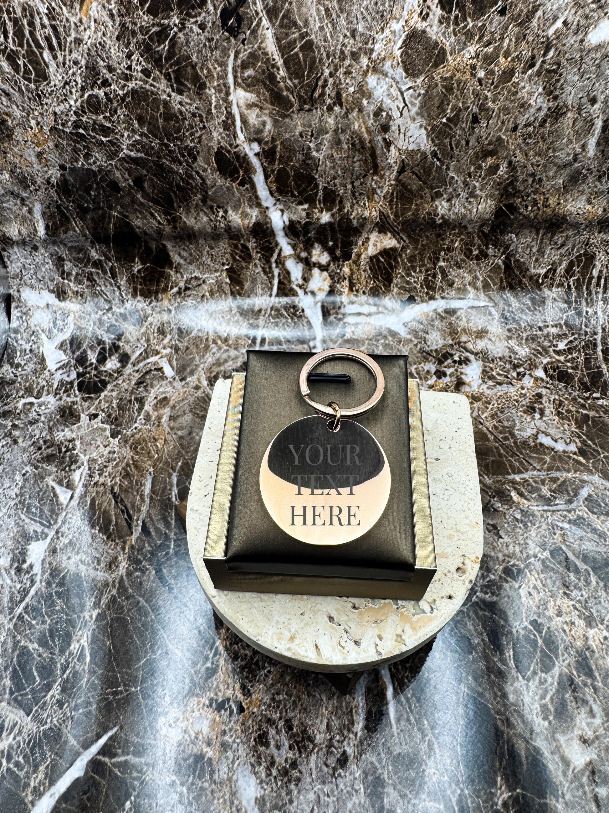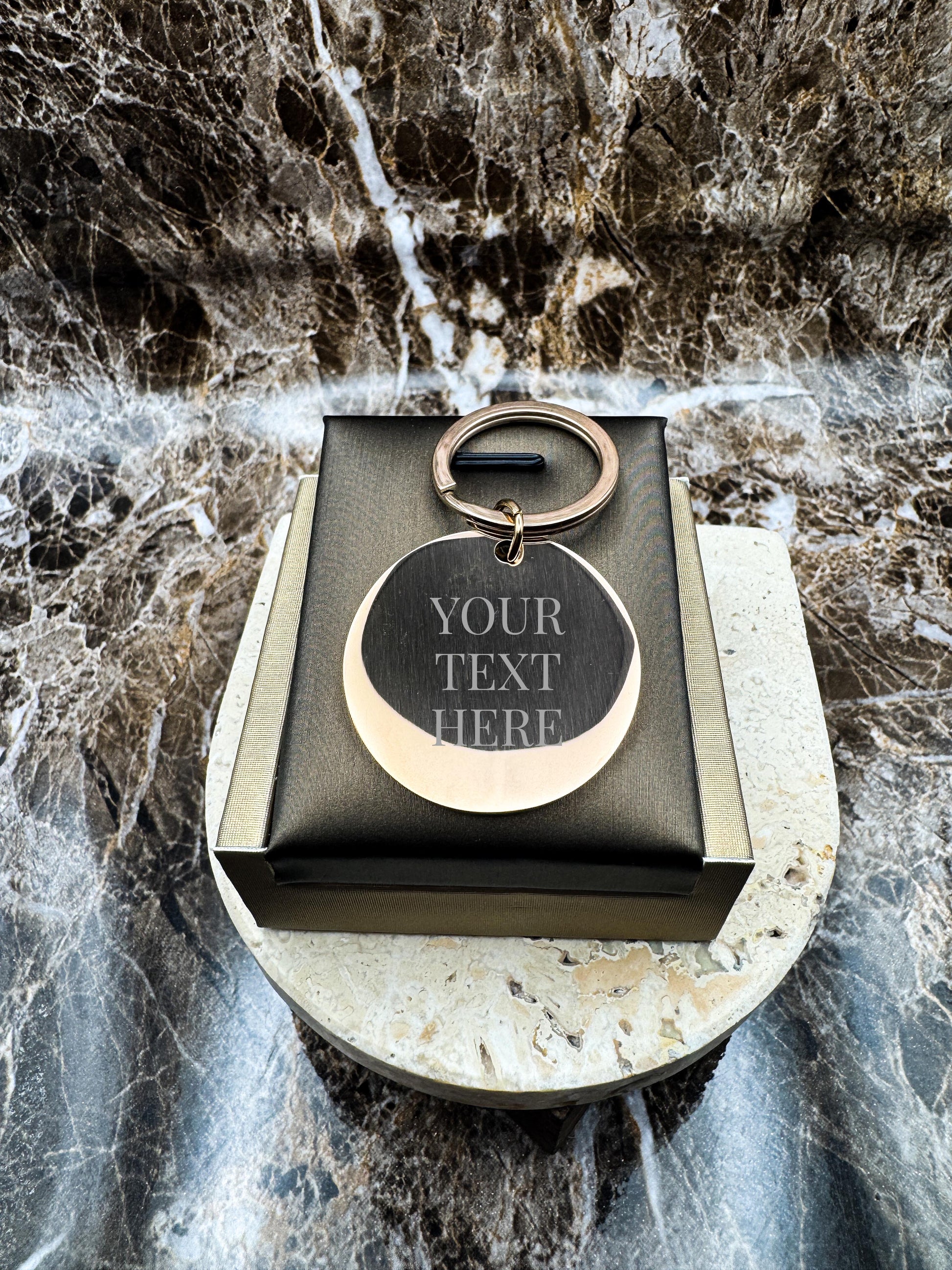 The Rose Gold Halo Custom Keychain, Personalized Rose Gold Engraved Keychain