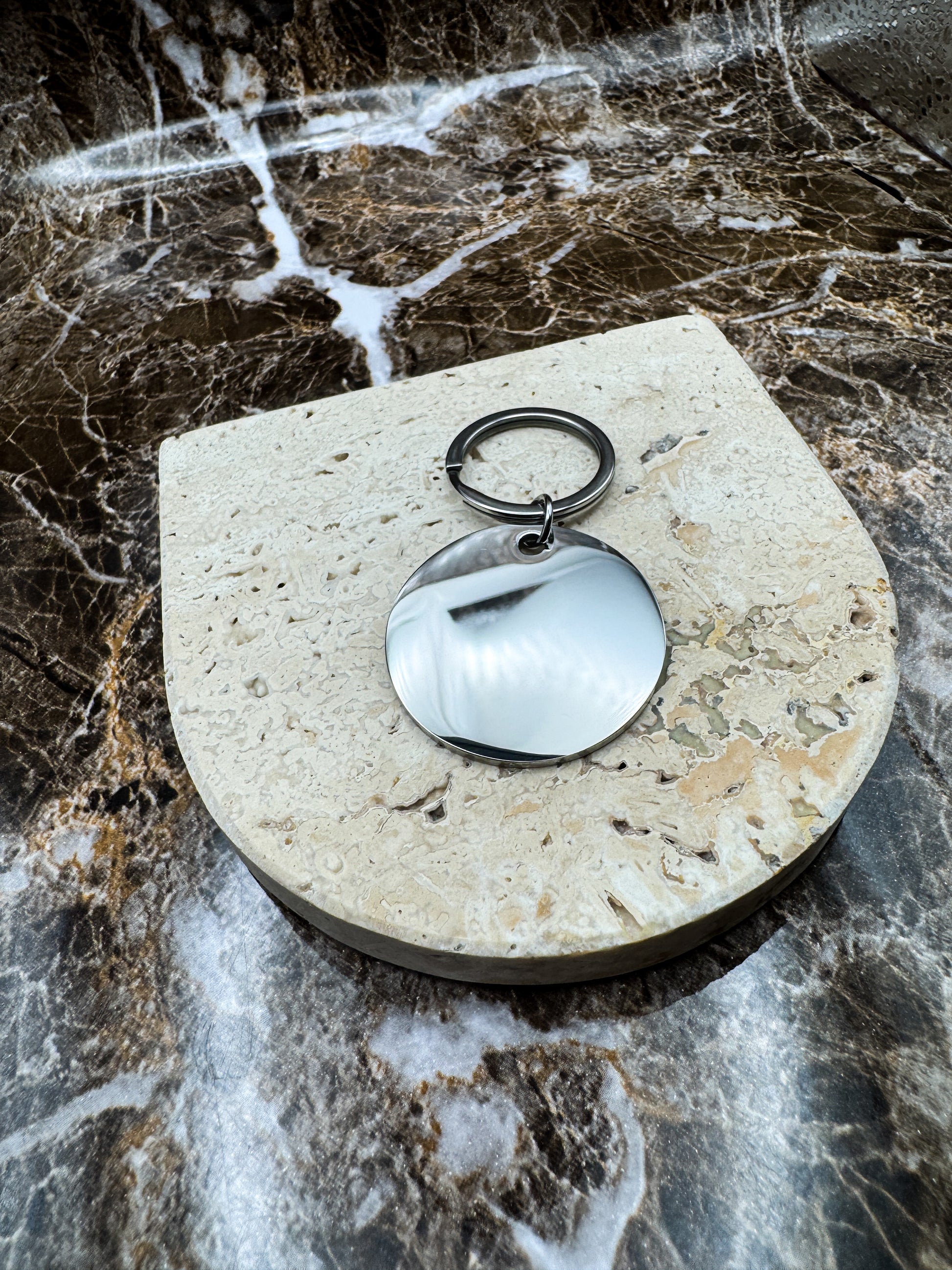 Add a timeless, personal touch to your everyday essentials with The Silver Halo Custom Keychain. Crafted from durable stainless steel, this elegant round keychain is designed to shine while holding special meaning.