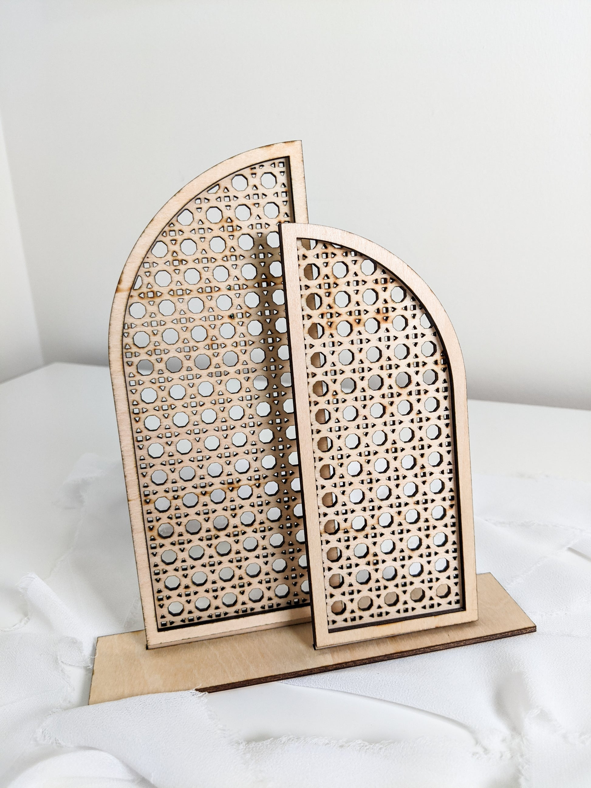 Wood and Rattan Arch Earring Holder, Boho Jewelry Organizer Stand for Studs and Dangles